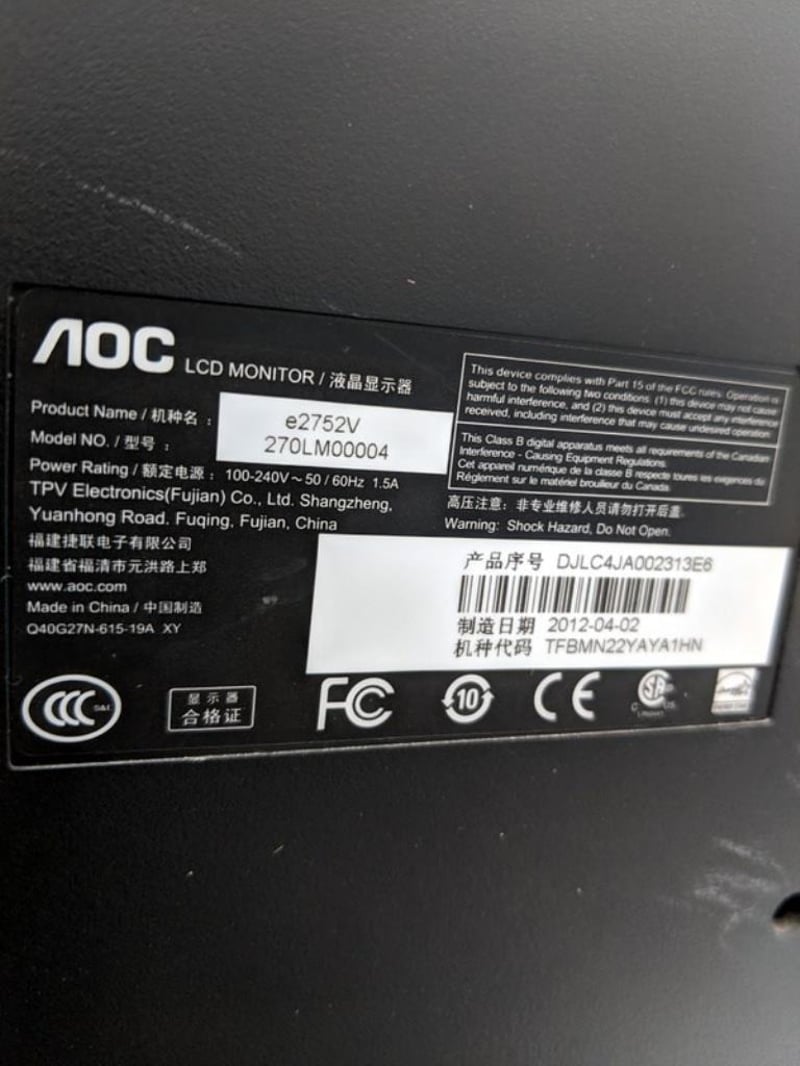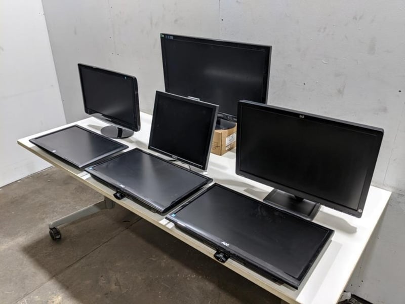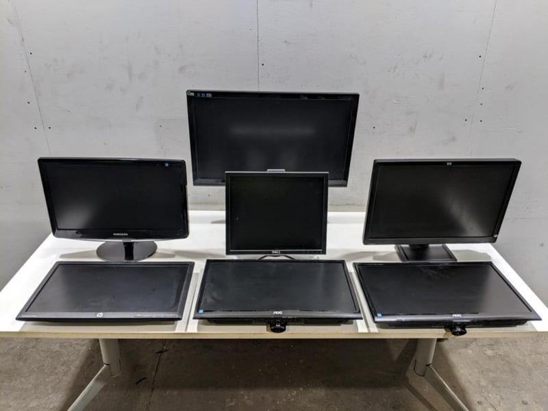 Assorted Monitors, Including: - Samsung - AOC - HP & More Sold as lot Note: Monitors missing stands, Cords not Included
