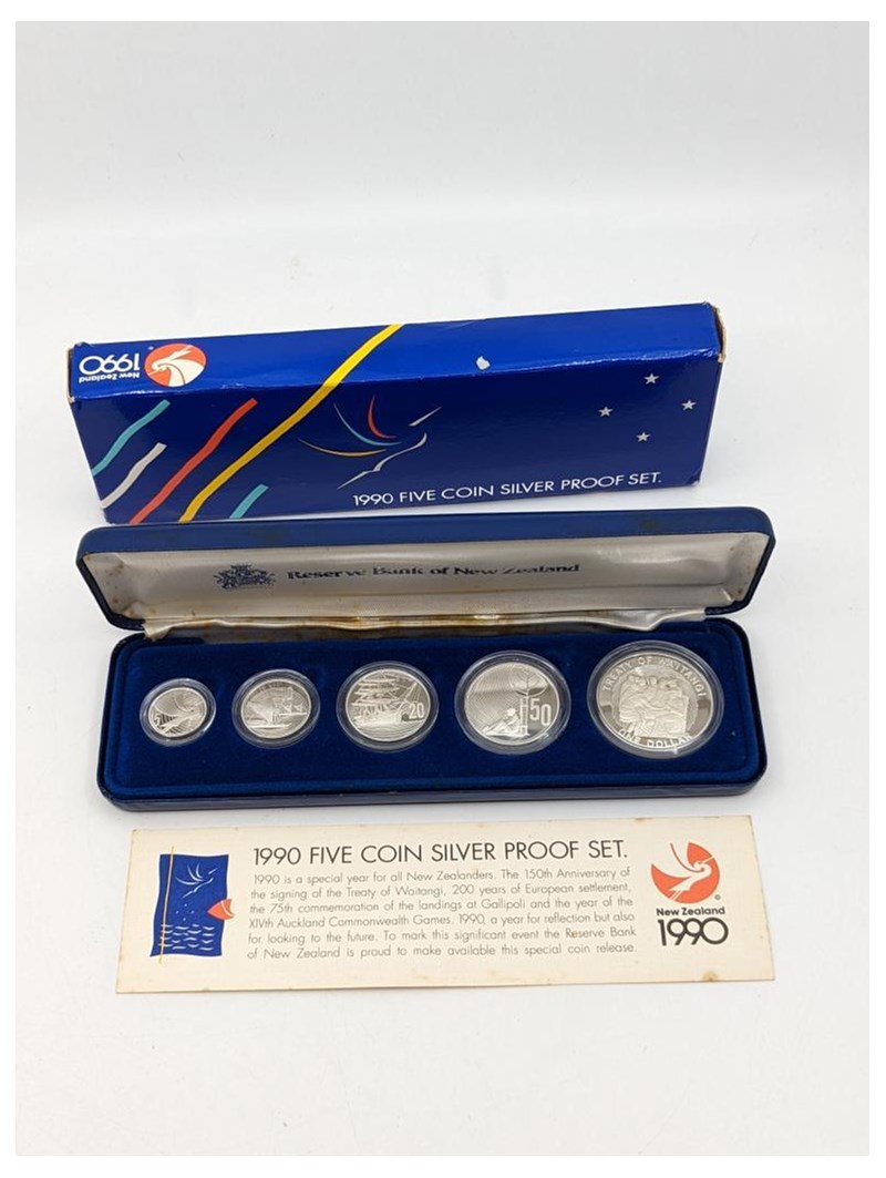 NEW ZEALAND 1990 FIVE SILVER COIN COLLECTION Condition: Proof235297+24