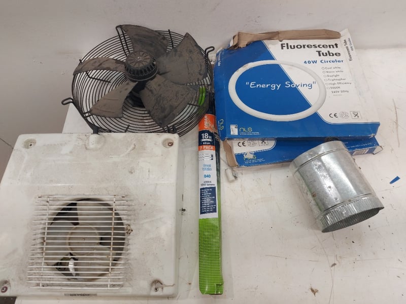 Assorted Lot Includes, Fan, Fluorescent Lights, And More, Sold As Lot