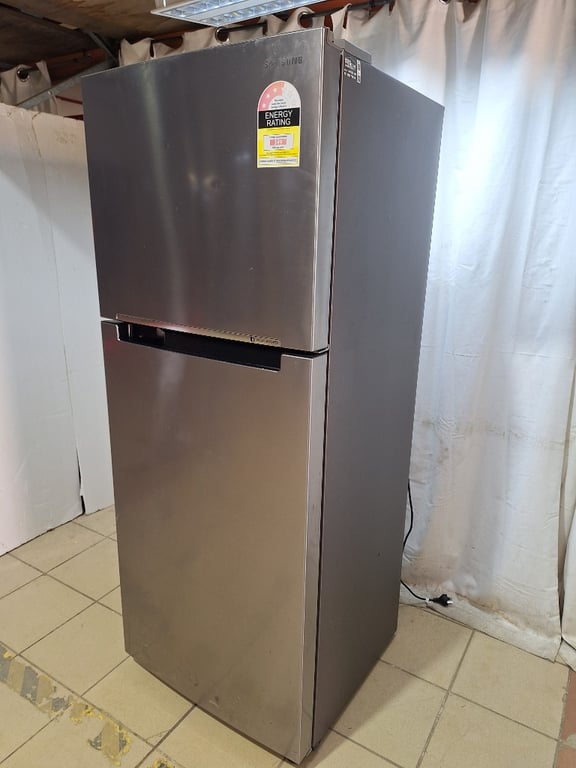 Refrigerator, Samsung, SR series SR400LSTC, top mount design with freezer located above the refrigerator, 400 litre capacity. Dimensions: H 172cm x W 68cm x D 66cm