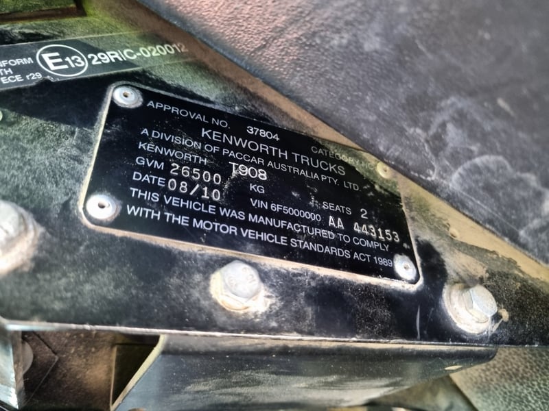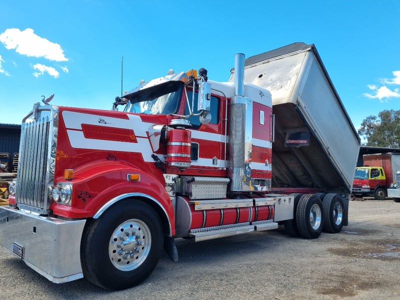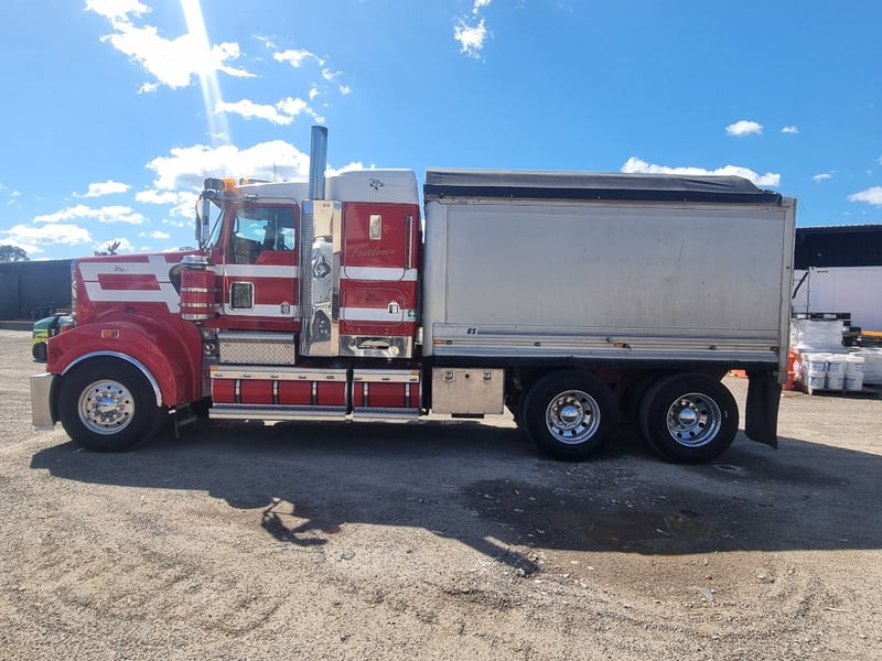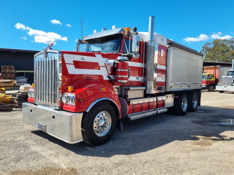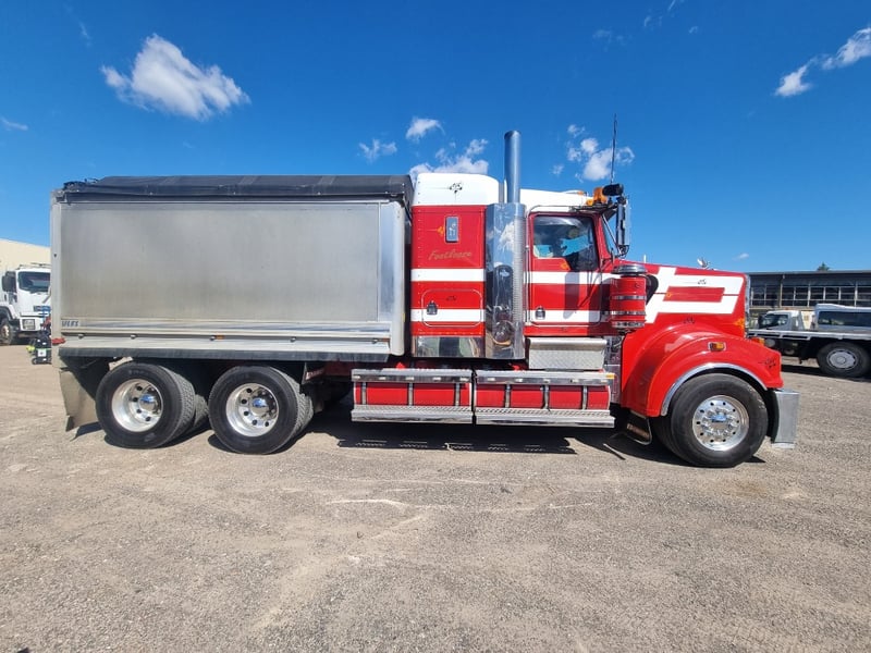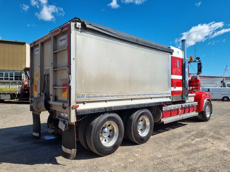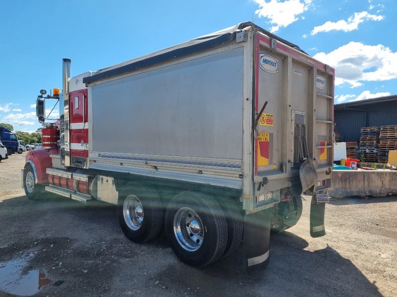 2010 Kenworth T908 tipper Year: 2010Make: KenworthModel: T908 tipperBody: 2-Door Prime MoverDrive Type: Rear wheel driveOdometer: Indicating 644,995 KilometersEngine: Turbo DieselTransmission: 18-Speed ManualColour: RedDescription/extras: GVM: 26500Configuration: 6x4Notes: Tipper Operational Chassis No: 6F5000000AA443153ENG No: 73425970 (AS PER PPSR)(Key #RA4 Marple)Lloyds stock #580811+1#CTM