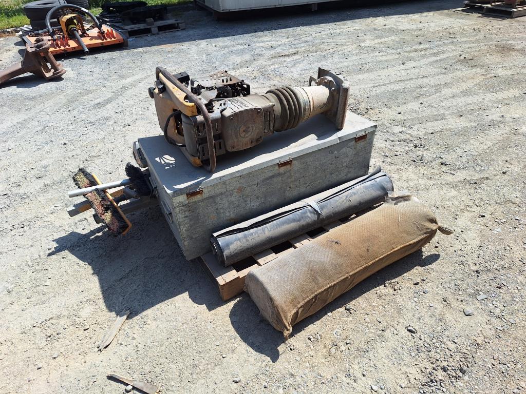 Various Hand Tools, Brooms, Picks, Tripods, Plus More, Metal Toobox, Rolls 1 x Plastic, 1 x Hesain, Waxker Neuson BS60-4s Compactor (Untested) Sold As Lot