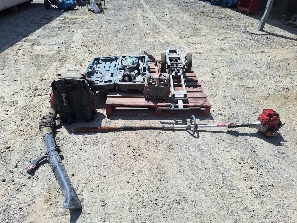 Pallet Of Power Tools, Includes Hitachi Jackhammer, Stands, Concrete Vibe And Blower Untested Sold As Lot