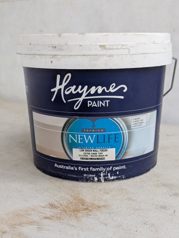 PAINT, HAYMES, NEW LIFE, LOW SHEEN WALL FINISH, EXTRA DARK TINT, 10LBID PER LITRE, MUST TAKE 10 LITRES
