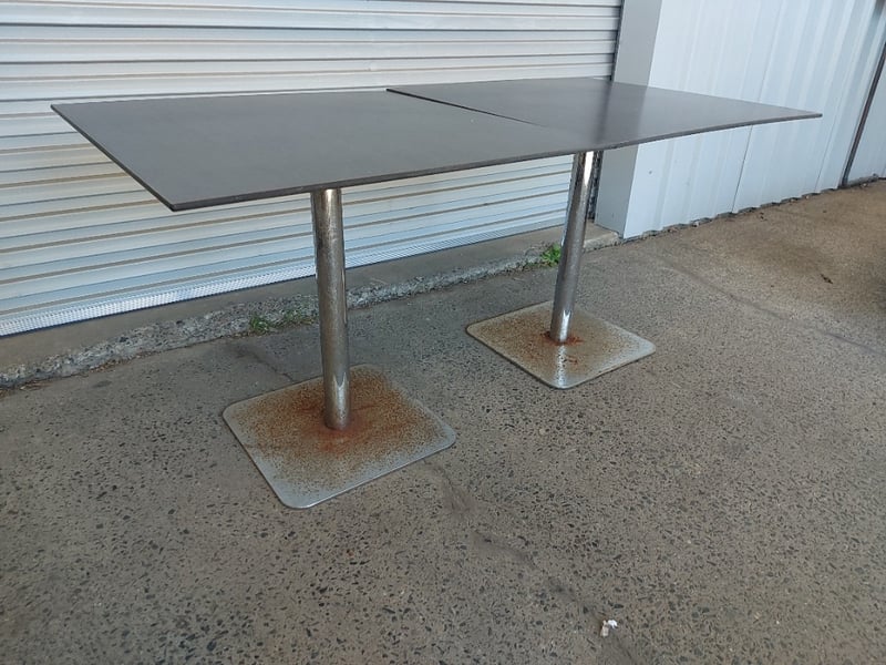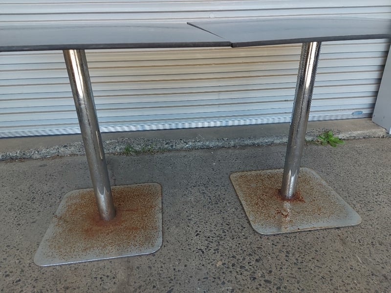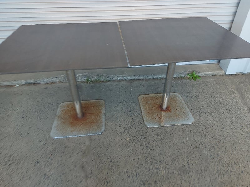 Restaurant Dining Tables, Table with Timber Top, Dimensions 74cm(H)×80cm(W), Quantity 2 Sold As Lot Note: Scratches Marks And Rust