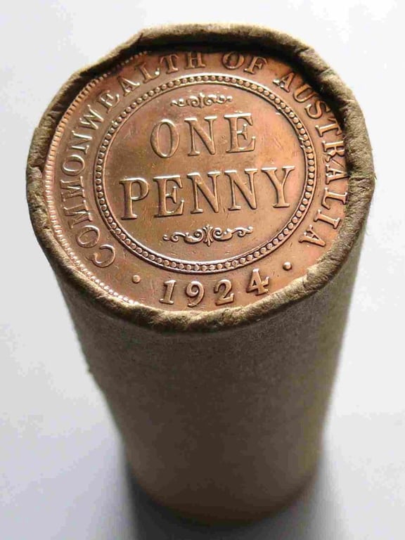 ROLL OF 1924 KGV AUSTRALIAN PENNY (50X CIRCULATED COINS IN A ROLL).