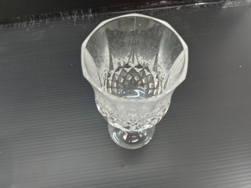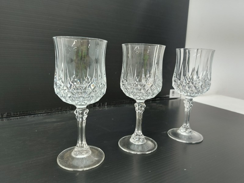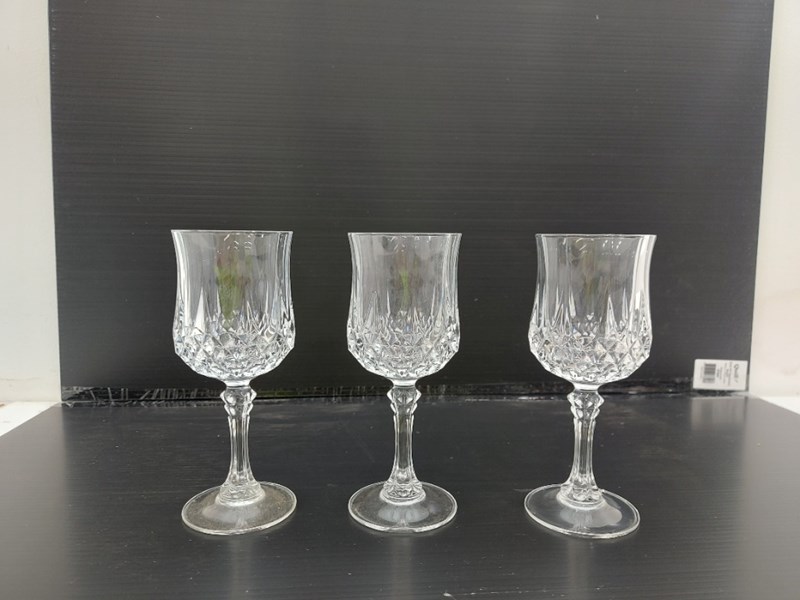 Crystal Wine Glasses, Longchamp, Diamond Pattern, Quantity 3, Sold As Lot