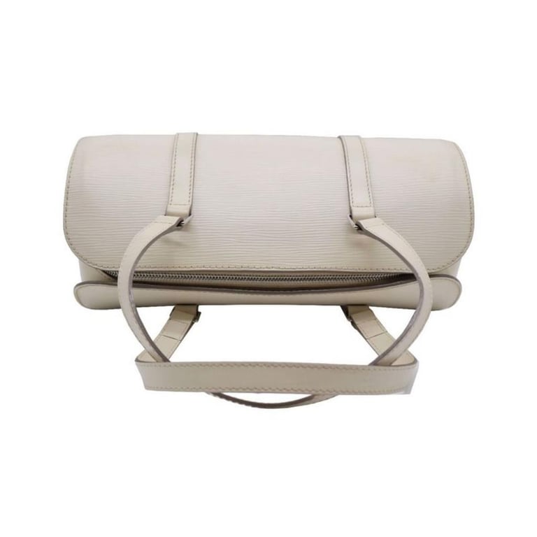 LOUIS VUITTON EPI LEATHER SOUFFLOT BAG IVORY Item Size: Height: 16cm, Width: 31cm, Depth: 15cm Exterior Material Leather With Silver-Tone Hardware, Dual Flat Top Handles And Zip Around Closure. Interior Material Alcantara Lining With A Main Compartment And A Slit Pocket. Additional Condition Report - Moderate Sign Of Wear, Tears And Stains On Exterior - Visible Stains And Wear In Interior - Sign Of Wear And Scratches On Hardware Handle Drop: 16Cm Pouch Size: 15.5 X 6 X 6Cm Detachable Comes With - A Detachable Pouch - Certificate Of Authenticity FC