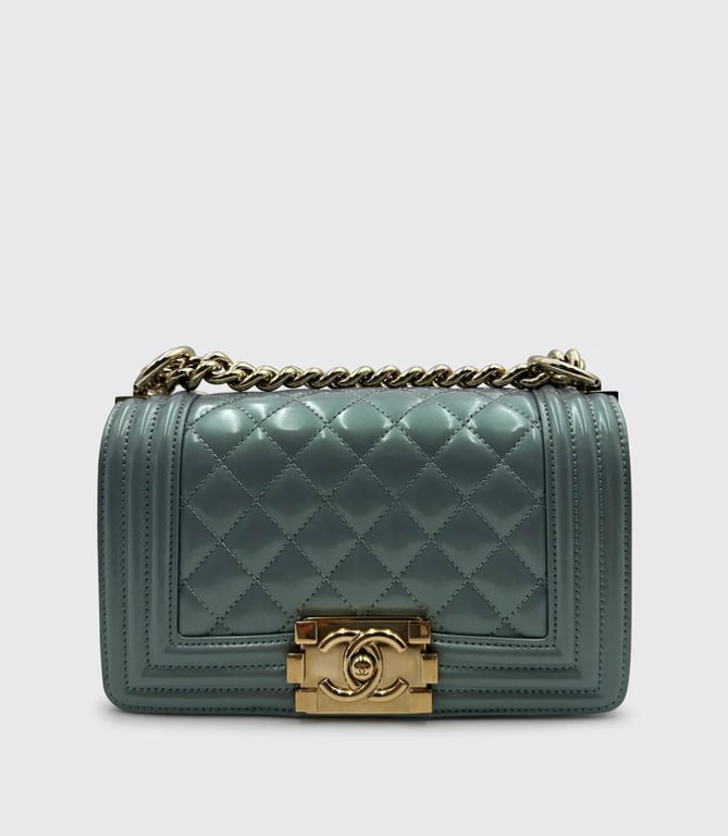 CHANEL BOY BAG PATENT LEATHER BABY BLUE SMALLItem Size: Height: 8cm, Width: 20.5cm, Depth: 13cmCondition: 9/10Exterior: Some Small Marks On The Flap. Interior: Some Light Marks Under Flap. Some Protective Stickers Still In Place. Hardware: Minor Hairline Scratches & Discolouration On The Buckle. Hairline Scratches On Gold Hardware.Condition: Good - Refer To ImagesCROSSDOCK162931+5