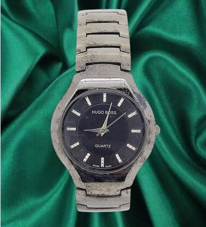 HUGO BOSS 602G CASE DESCRIPTION: STAINLESS STEEL CASE SIZE: 30MM BRACELET: STAINLESS STEEL BOX: INCLUDED PAPERS: NOT INCLUDED Condition: Fair - Refer To Images 488206+9