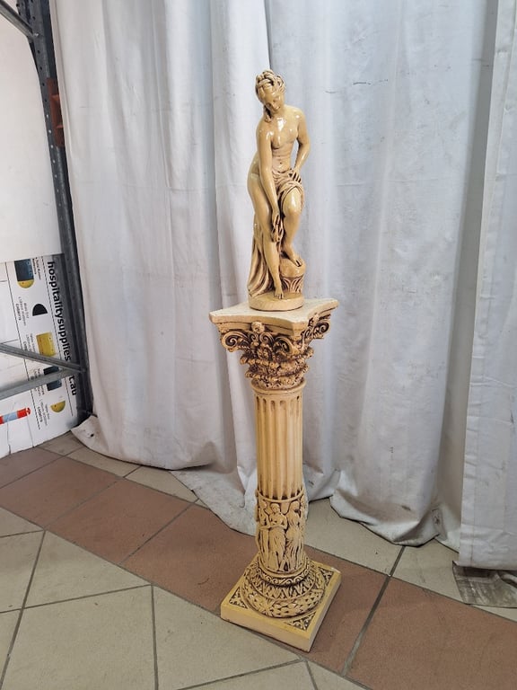 Decorative Statue on a Pedestal, Composite Style Material, Fluted Pedestal.Note: Small Chip on Pedestal Base, Statue is not attached to baseDimensions: Statue- H 41cm x W 15cm x D 15cm.Dimensions: Pedestal- H 72cm x W 22cm x D 22cm.SOLD AS LOT.