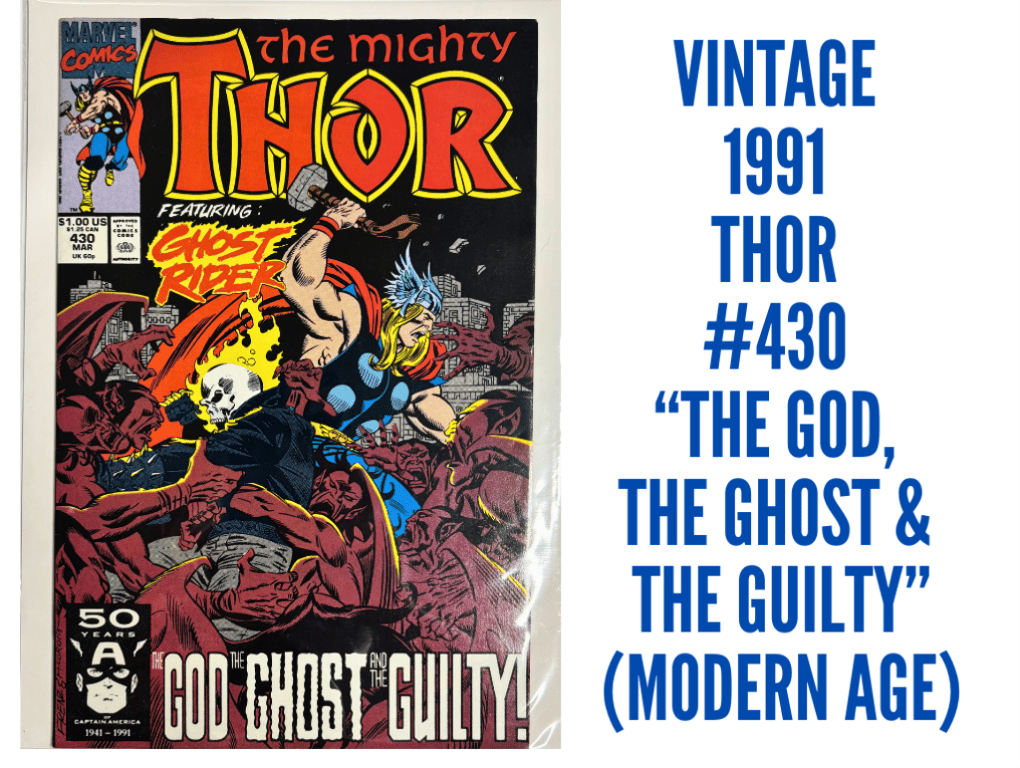 1991 THOR #430 – THE GOD, THE GHOST & THE GUILTY (MODERN AGE)Ghost Rider Joins Thor In This Dark Supernatural-Themed Marvel Comic. 90S Team-Up Goodness And Powerful Visuals.- 1991 Thor #430- Thor X Ghost Rider Crossover- Gritty 90S Supernatural Marvel584901+79
