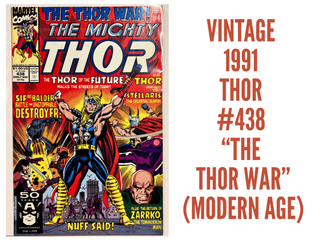 1991 THOR #438 – THE THOR WAR BEGINS (MODERN AGE MARVEL)Kicking Off "The Thor War" Arc, This Issue Pits Thor Against New Enemies As Timelines And Legacies Collide. A Must-Have For Fans Of The 90S Marvel Era.- 1991 Thor #438- Launch Of Thor War Storyline- 90S Marvel Collectible584901+81