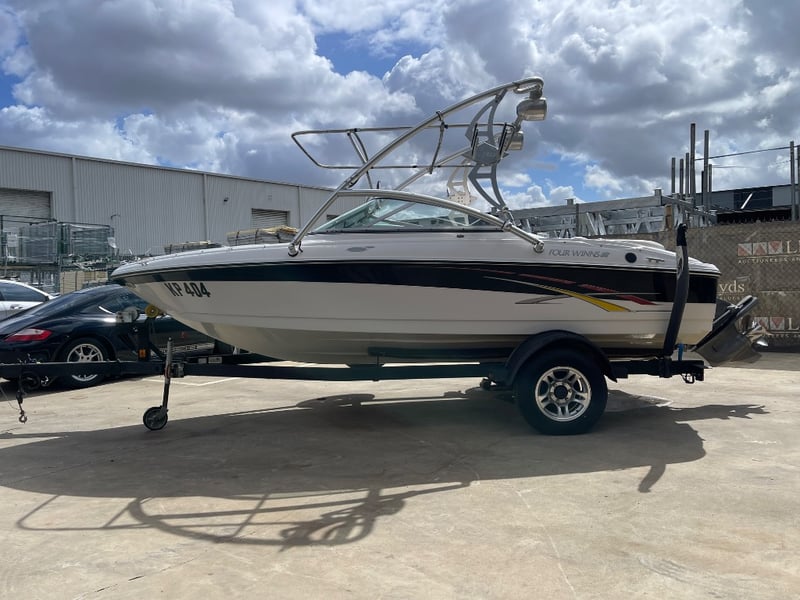 2007 Four Winns 180 Horizon Boat Year: 2007Make: Four WinnsModel: 180 Horizon Boat Type: V - Open cabHull Material: FibreglassHIN #: US-GFNMB996D707Colour: WHITE/BLACKDescription/extras: Hour Indicates.: (unsighted) Approx: 550 h Seats: 7WITH AN INBOARD ENGINE:Make: volvo pentaModel: sx-aYear: unknown Size: v6 6cylserial: 4202203032Fuel Type: 4.3l PetrolON A TRAILER:Year: 2007Make: unknownModel: FourWIVIN: 42KD25P1272000317Colour: BLACKKey: B1#MMR