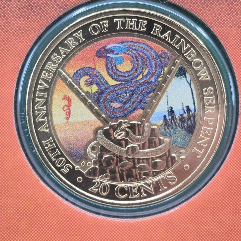 AUSTRALIAN COIN Royal Australian Mint 2025 Gold Plated The Rainbow Serpent Anniversary Edition Bonus Collectible Colorised Coin. Condition: Uncirculated+42