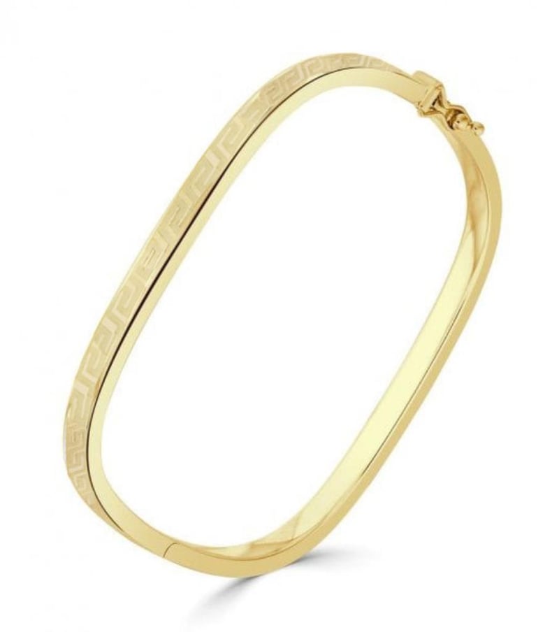 9K YELLOW GOLD GREEK DESIGN BANGLE Total Item Weight: 6.8gms 9K Yg Flat Square Polished Greek Design Hinged Bangle 5Mm. Inside Diameter 60X52Mm. Markings: 9K / 375 Jewellery Valuations Provided By A Third Party Professional Not Directly Associated With Lloyds Auctions at AUD $1850This Insurance Valuation has been provided by a registered Jewellery Valuer and is intended for insurance purposes only. The valuation amount has no bearing on the auction value of the item. Any questions regarding the valuation should be directed to the issuing Valuer (refer to contact details on the certificate) as Lloyds have no association or relationship with the Valuer or the valuation amount contained within the valuation. Condition: Good - Refer Images 0162965+7Crossdock