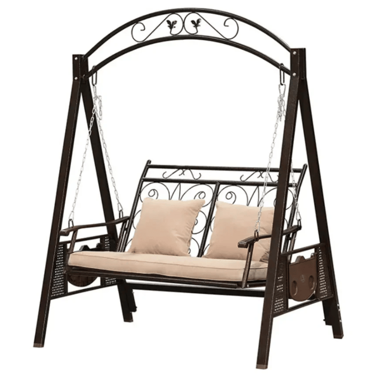 ORP: $899.99 Model: SCHAIR-TB-HKDOUBLE-BRN MASON TAYLOR 2 Person Alloy Steel Frame Hanging Swing Chair - Brown. cushions for display only