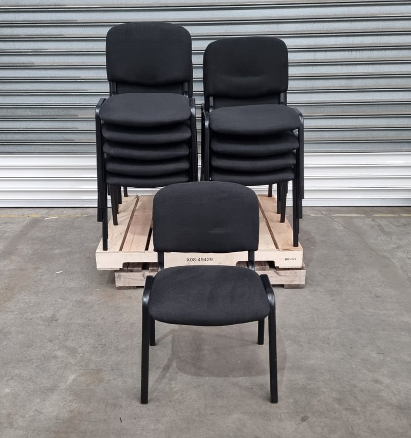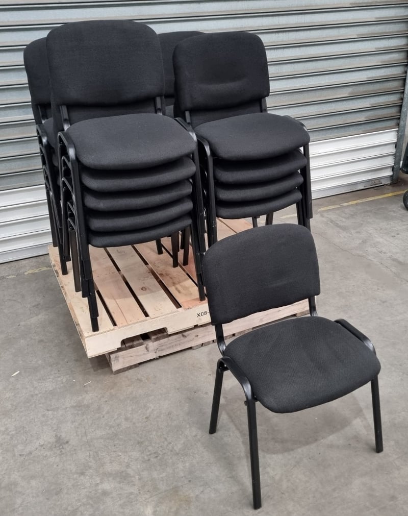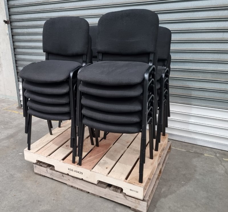 Pallet Lot of 18 Steel Frame Black Padded Stackable ChairsDimensions: 42x53x81cm