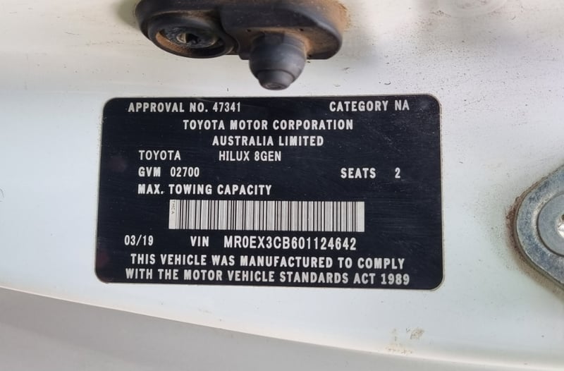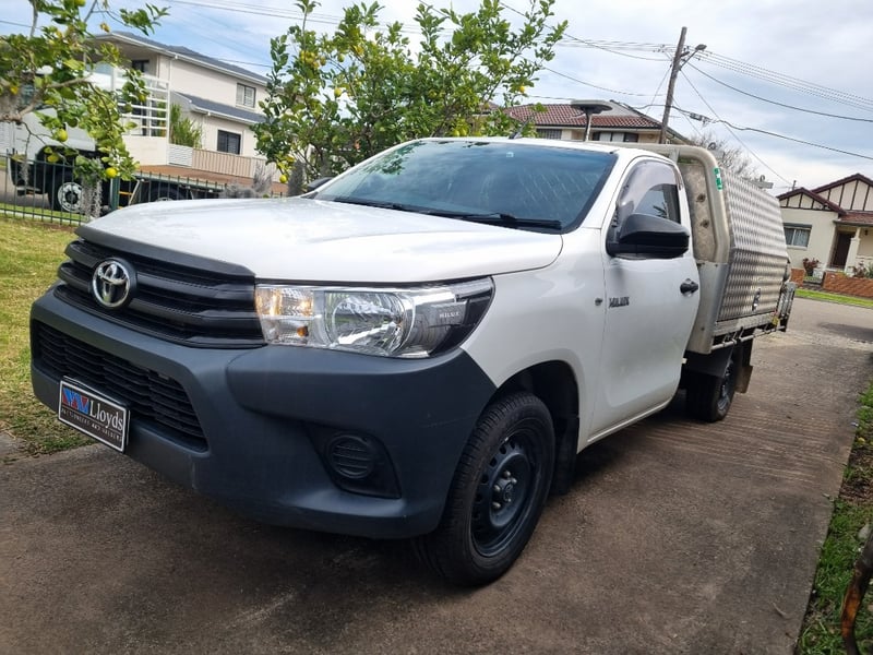 2019 Toyota Hilux White Price Guide - $16,000 - $18,000 (Based on standard condition unmodified, excluding attachments and/or additions) Year: 2019 Make: Toyota Model: Hilux Body: Single Cab Utility Drive Type: Rear Wheel Drive Odometer: Indicating 143,029 km Engine: 2.7 Litre Petrol Transmission: Auto Colour: White Seats: 2 VIN: MROEX3CB601124642 Engine: 2TRA588717 (as per PPSR) Description/extras: Marks , scratches & small dents noticed , wear and tear - toolboxes in tray CONTENTS IN TRAY NOT INCLUDED