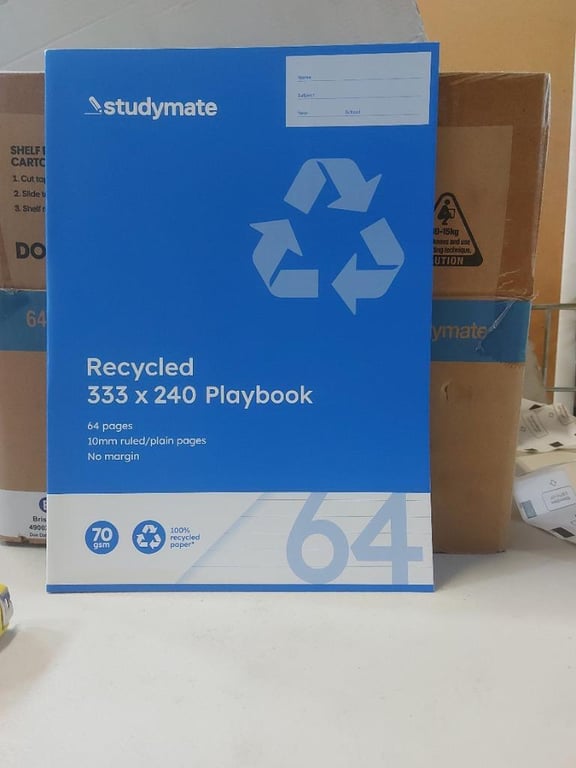 Box of 64 page recycled 330x240 playbook, blueSOLD AS LOT