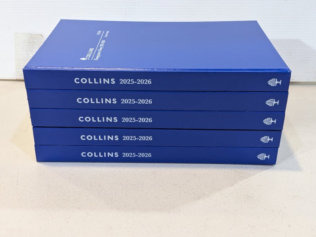 A4 25/26 Financial Year Diaries, Collins Blue C141P59F25 x 5 SOLD AS LOT