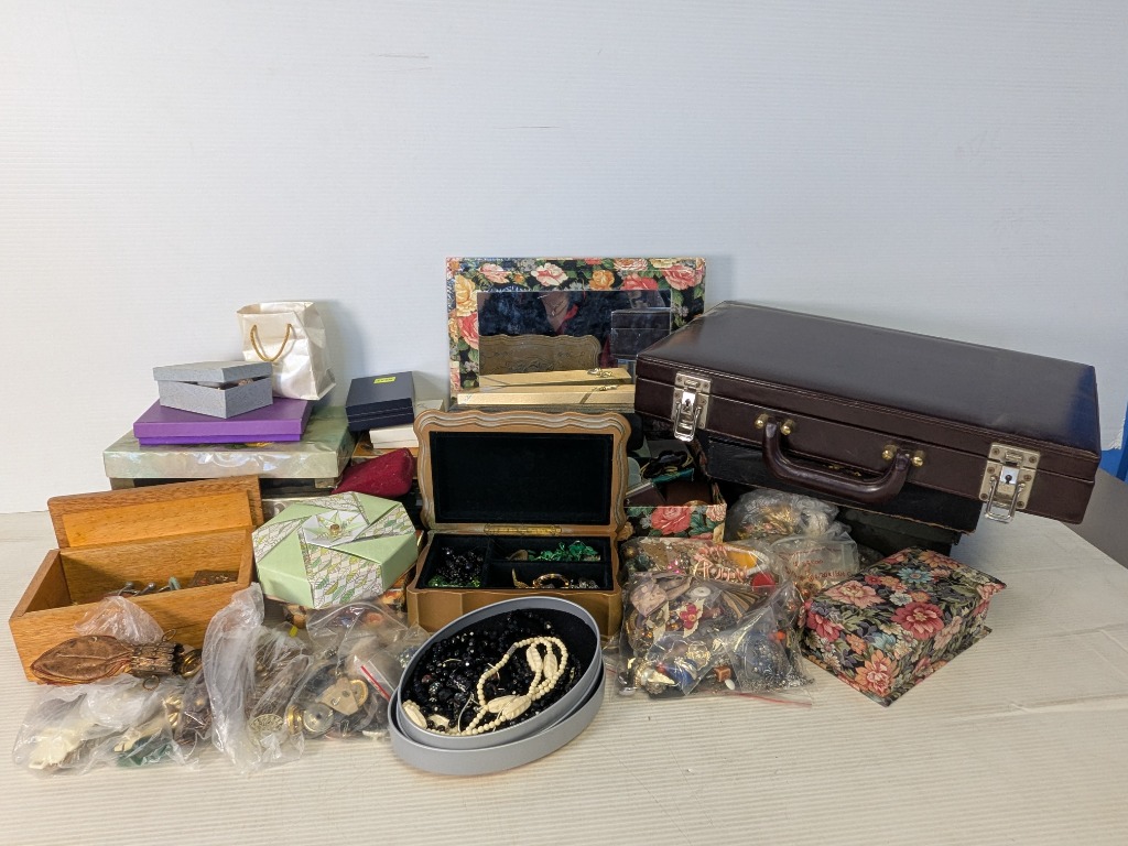 Jewellery, assorted pieces includes necklaces, rings, buttons, brooches and more