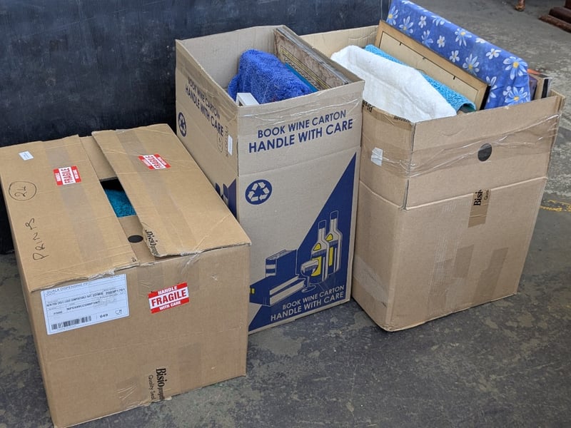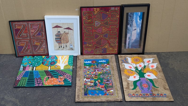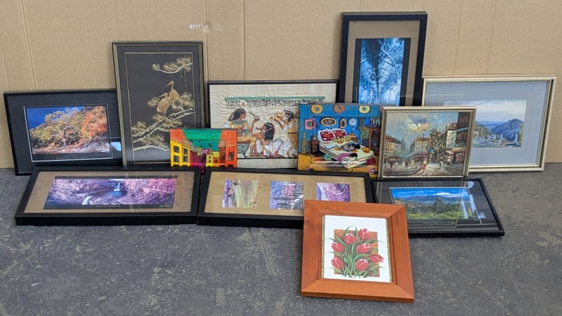 Artwork, 3 boxes including framed prints, canvas paintings and more Sold as lot