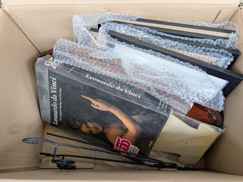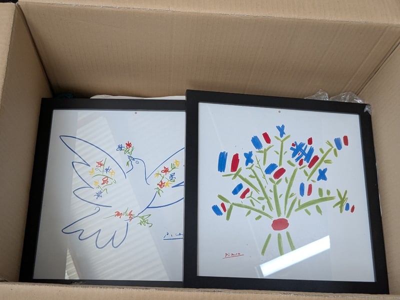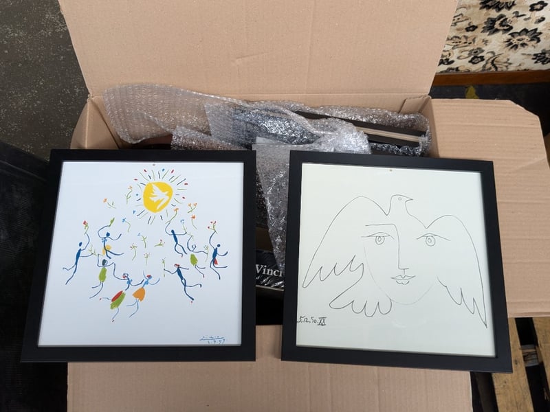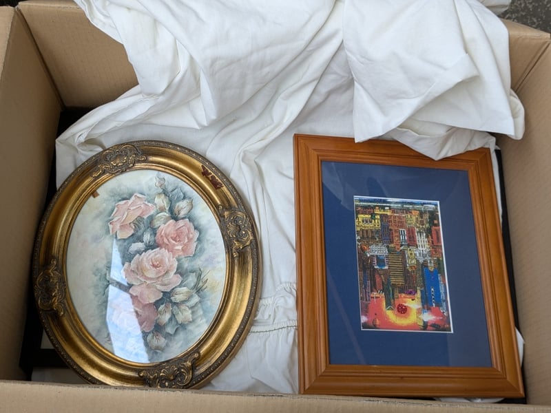 Artwork, 2 boxes including framed prints, paintings and more