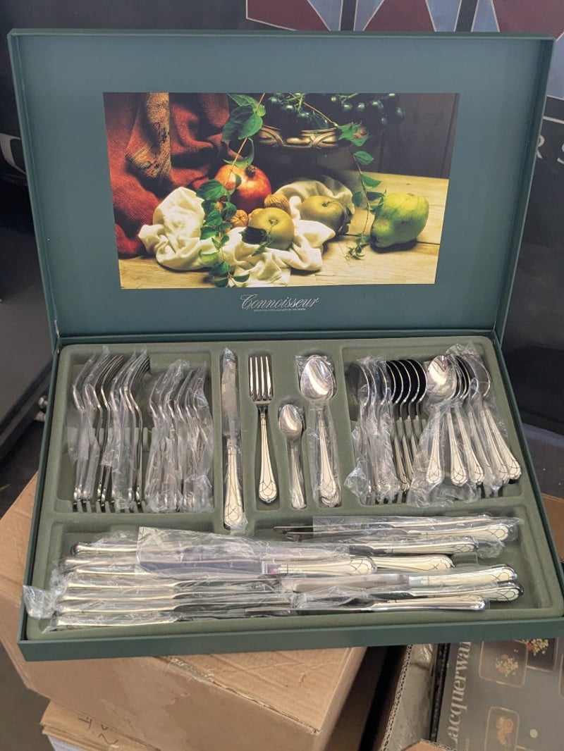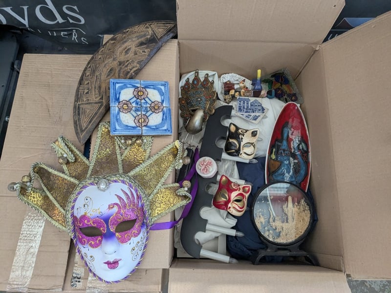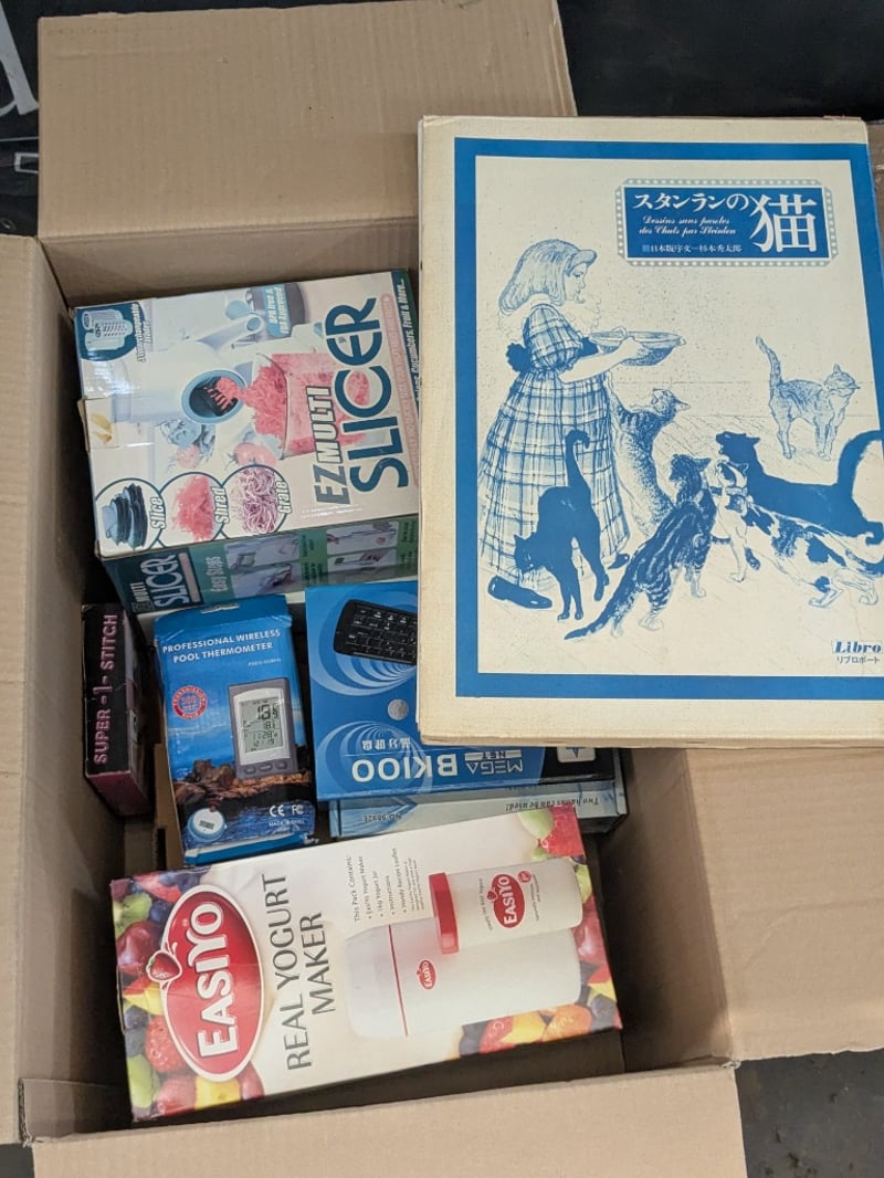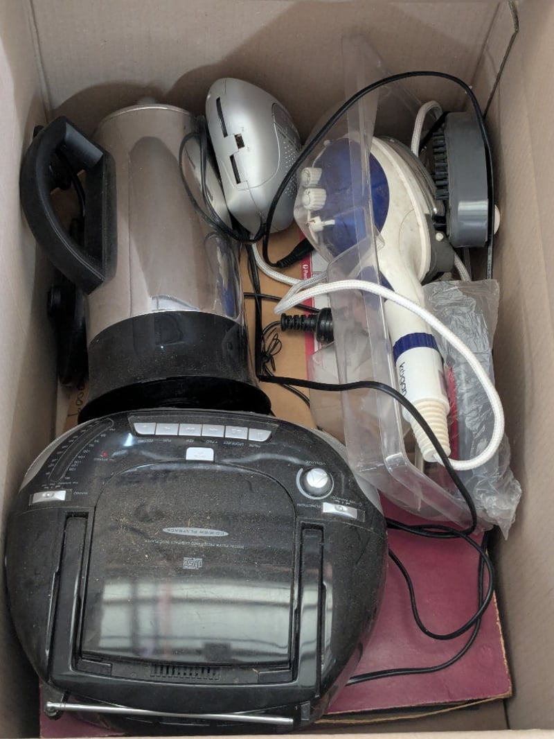 Homewares, 6 boxes including assorted electrical, ornaments, cutlery set and more Sold as lot