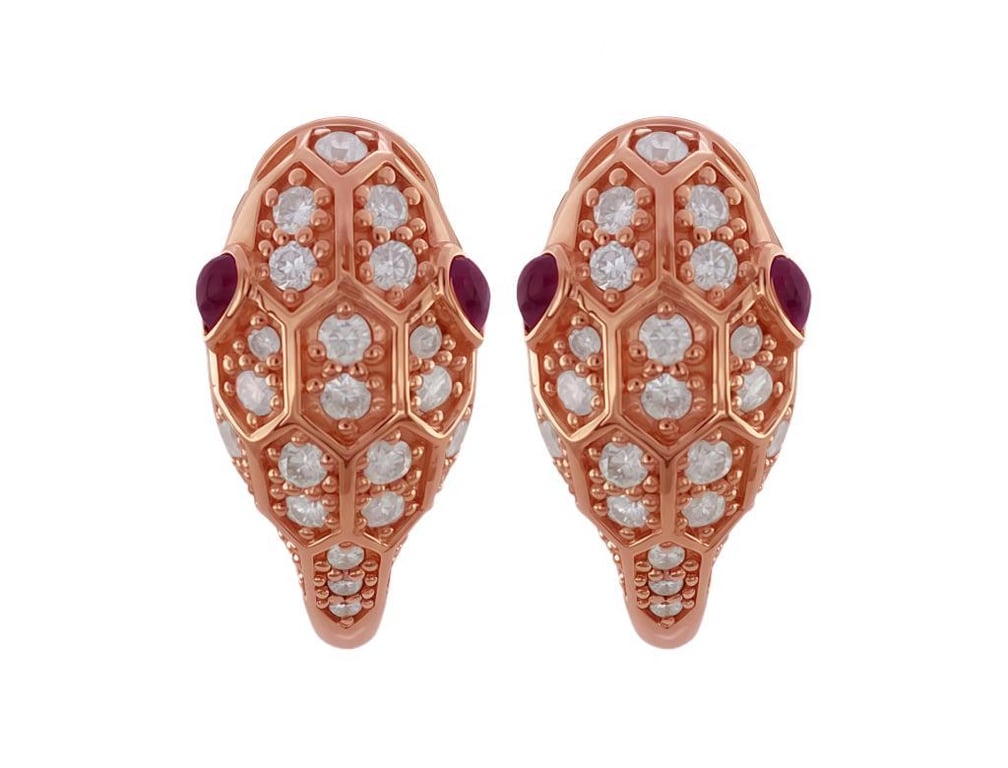 9CT PINK GOLD DIAMOND AND RUBY EARRINGS