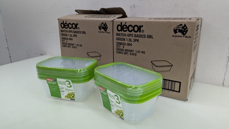 Decor Match Ups Basics OBL, 1.5 Litre, Colour Clear/Green, 3 Per Pack, Quantity 8Sold As Lot