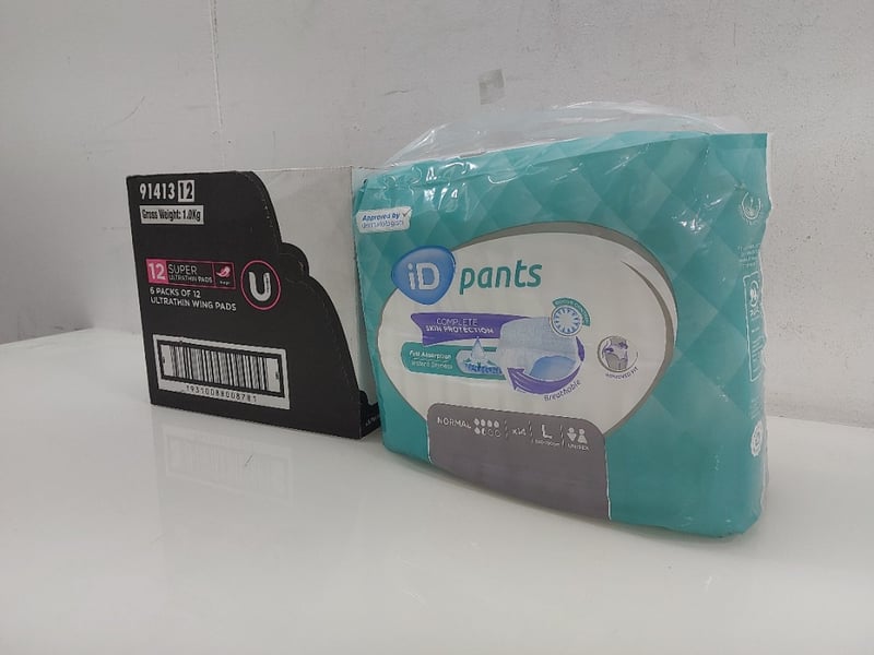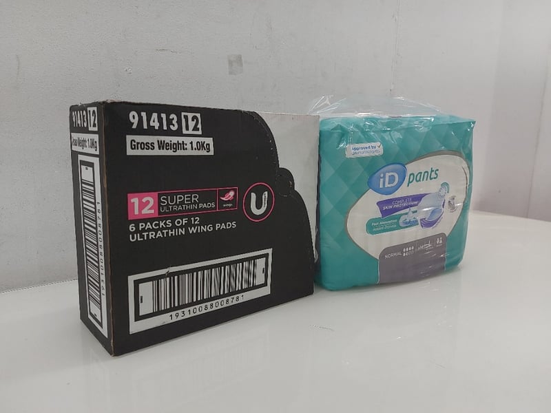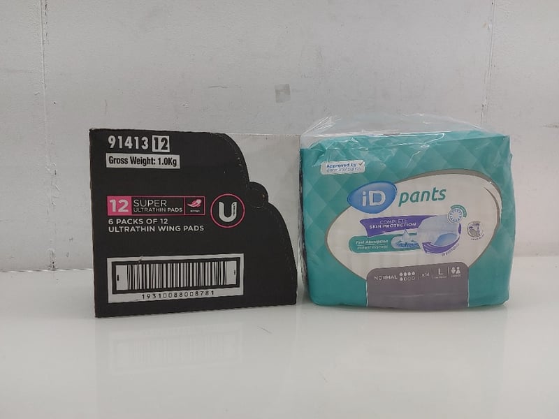 Kotex Super, Ultrathin Pads, Wings, 6 Pack Of 12, ID Pants Normal, ×14, Size Large, Unisex, Quantity 2Sold As Lot