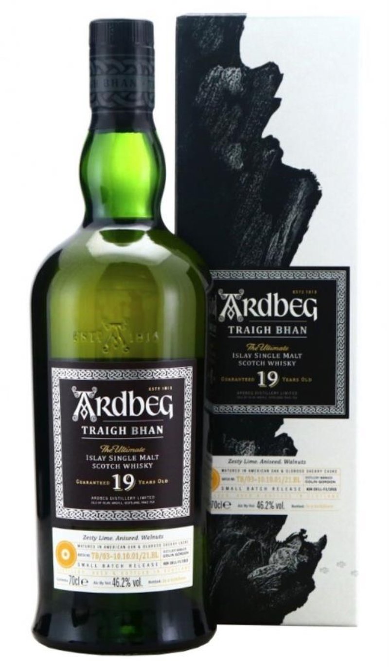 "Ardbeg Traigh Bhan 19 Year Old Single Malt Scotch Whisky, Batch 3, 700ml, This third batch release has been aged in a combination of American oak and ex-Oloroso sherry casks before being bottled. Nose: Smoke, ash, citrus, marzipan, fresh wood, orange peel, apricot, smoked pineapple, banana, anise. Taste: Slightly sweet, seaweed, salty liquorice, white pepper, anise, cloves, fleshy, ripe fruit. Finish: Long, powerfully spicy, peppery, citrus, ginger, smoke. Alc/Vol - 46.2%."