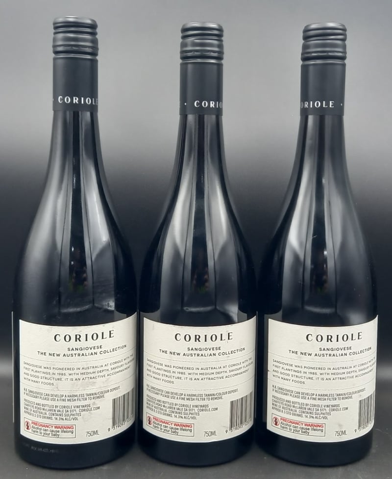 Sangiovese, 2023, Coriole Sangiovese, Mclaren Vale 3x 750ml sealed bottles Sold as lot