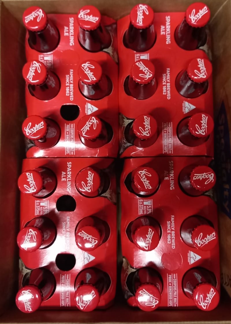 Sparkling Ale, Coopers 24 x 375ml 4x 6 packs or Coopers sparkling ale, 6 bottles per pack 375ml Sold as lot