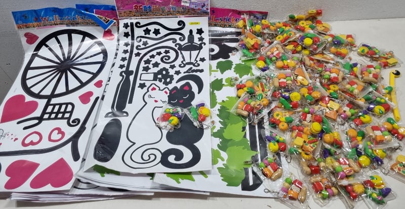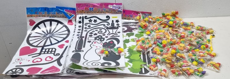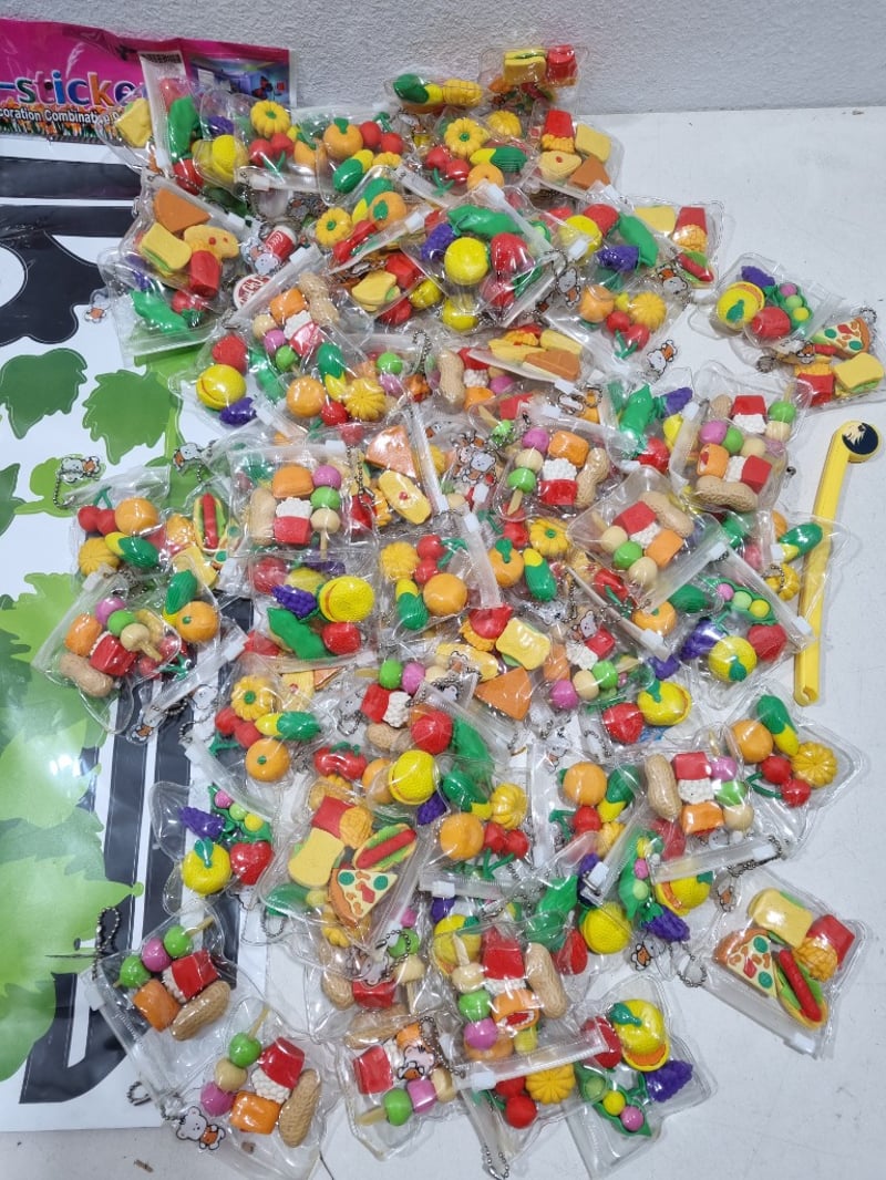 INCLUDES ASSORTED ERASERS AND NEW FASHION DECORATION COMBINATIVE STICKING PAPER ART.( VARIOUS DESIGNS)