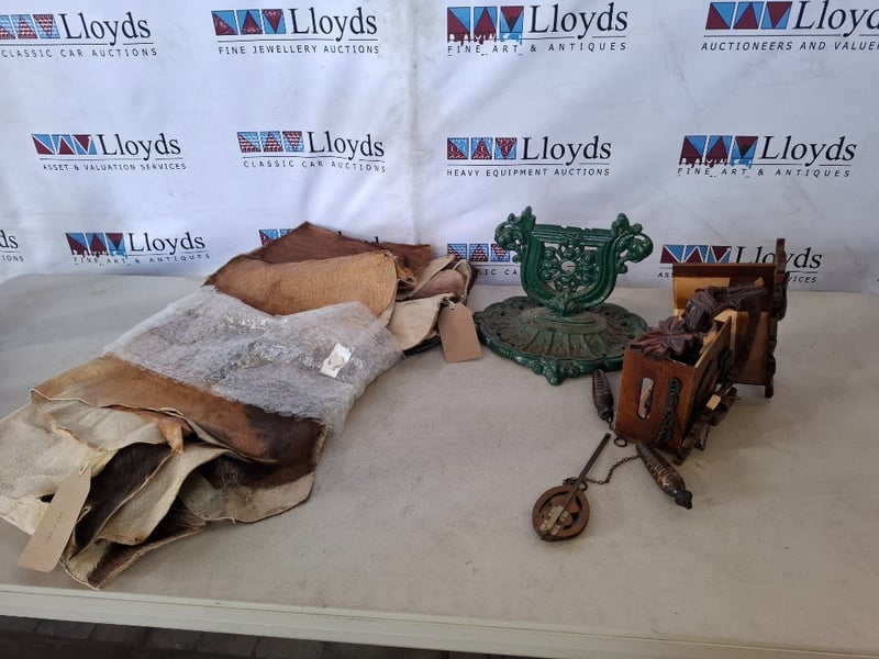 Assortment Lot Includes, Animal Skins, Broken Clocks, And Metal Lid