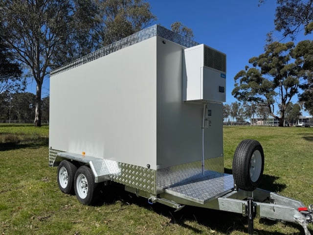 The 3800 Cool Room Trailer offers maximum storage capacity and reliable cooling performance for large-scale commercial and event needs. Its 3.8m insulated cool room body is built with 100mm thick premium panels for superior efficiency, powered by TECUMSEH 1.5P cooling system (–18°C to +10°C). Designed for durability, it features a hot-dipped galvanized chassis with aluminium checker plate finish, electric brakes, 15-inch tyres (plus spare), dropdown support legs, and a comprehensive lighting package. Safety is ensured with an emergency release exit, fitted bell, and waterproof 15-amp inlet. Practical inclusions such as a drain plug, internal door flaps, 1950mm internal height, and wide 900x1700mm door make it ideal for professional catering, events, and heavy-duty commercial use.