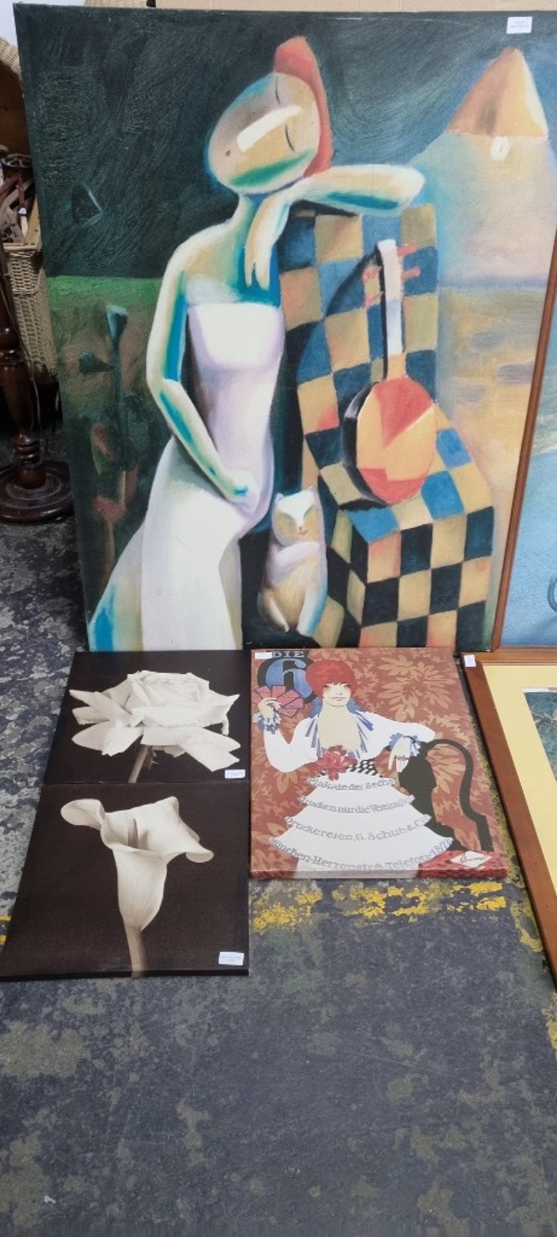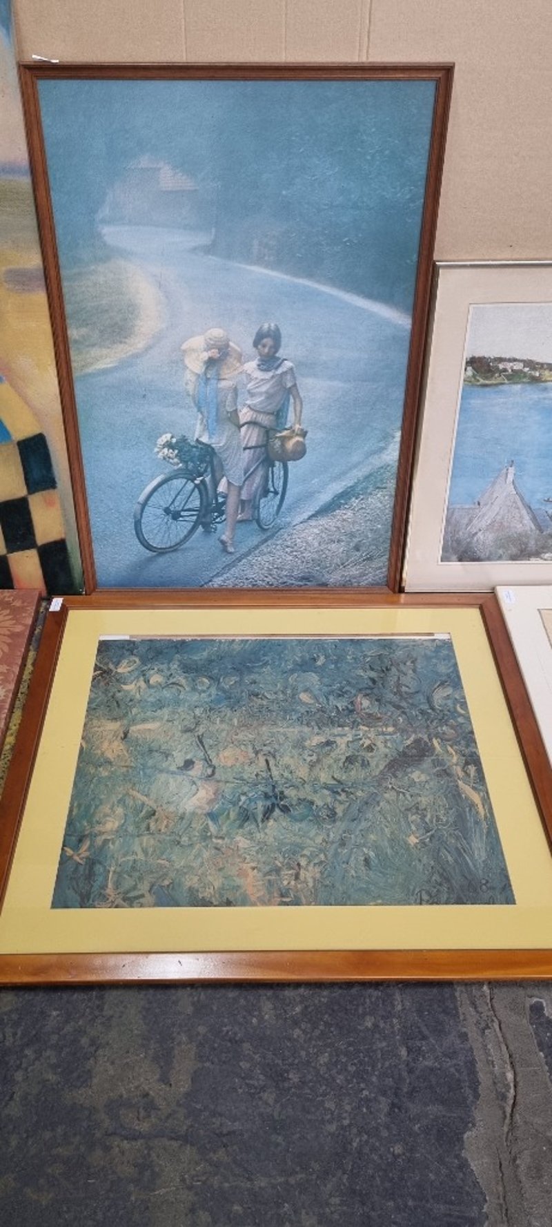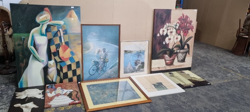 Prints, assorted prints Depicting girls on bike, flowers, coastal scenery and more