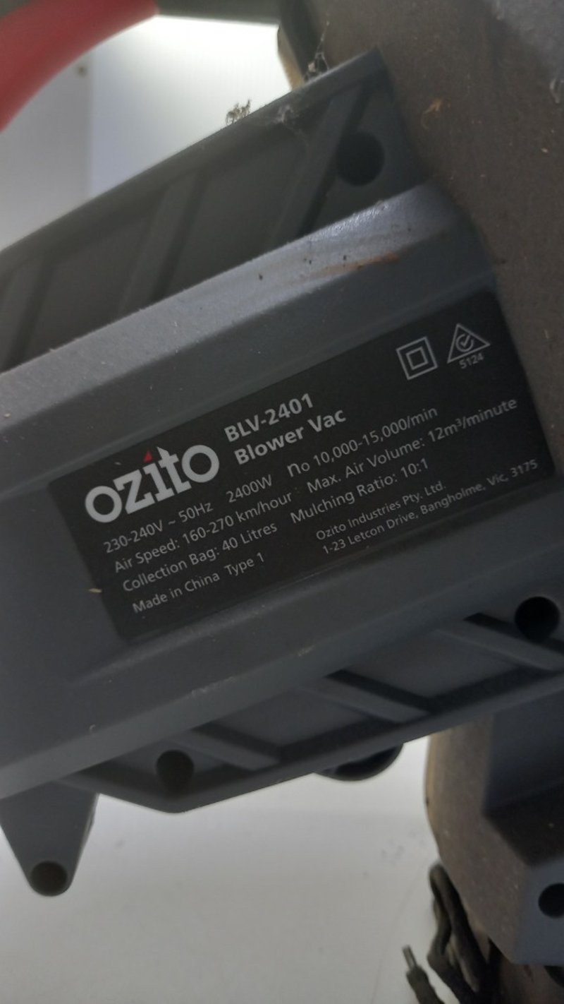 Blower, Ozito electric 3 in 1 Vacuum, blower and mulcher model no. BLV 2401