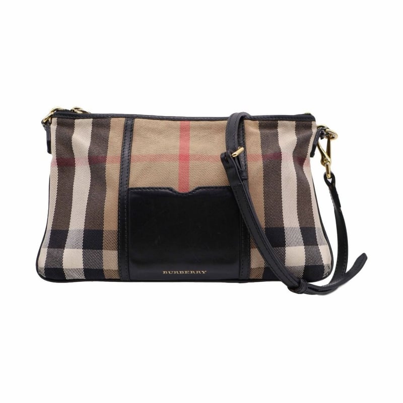 BURBERRY BEIGE/BLACK HOUSE CHECK CANVAS CROSSBODY BAGItem Size: Height: 17cm, Width: 24cm, Depth: 2cmExterior MaterialCanvas Amd Leather Trim With Gold-Tone Hardware, A Front Patch Pocket, Top Zip Closure And A Shoulder Strap.Interior MaterialTextile Lining With A Main Compartment And Slip Pockets.Additional Condition Report- Moderate Sign Of Wear On Exterior- Moderate Scuffs And Creases On Exterior Corners And Along The Exterior- Minor Wear In Interior- Sign Of Wear And Scratches On HardwareStrap Drop: 47CmComes With- Original Box- A Detachable Strap- CoaCROSSDOCK162981+36