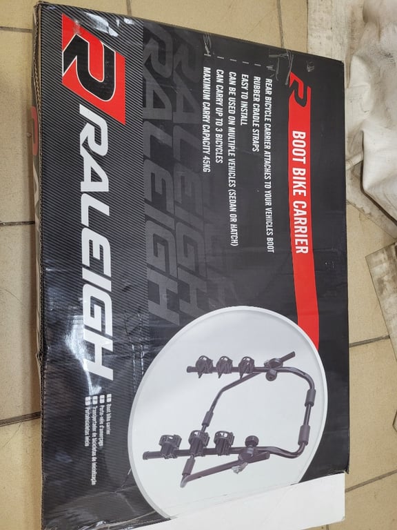 Raleigh Boot Bike Carrier, Carry Up To 3 Bicyles, Max Capacity 45KG, Black FinishDimensions H:59 W:5cm D:48cm