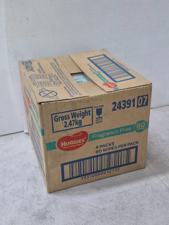 RRP $5ea Huggies Thick Baby Wipes Fragrance Free, 4 Packs 80 Wipes per pack. PC 2439107 Bid per each.