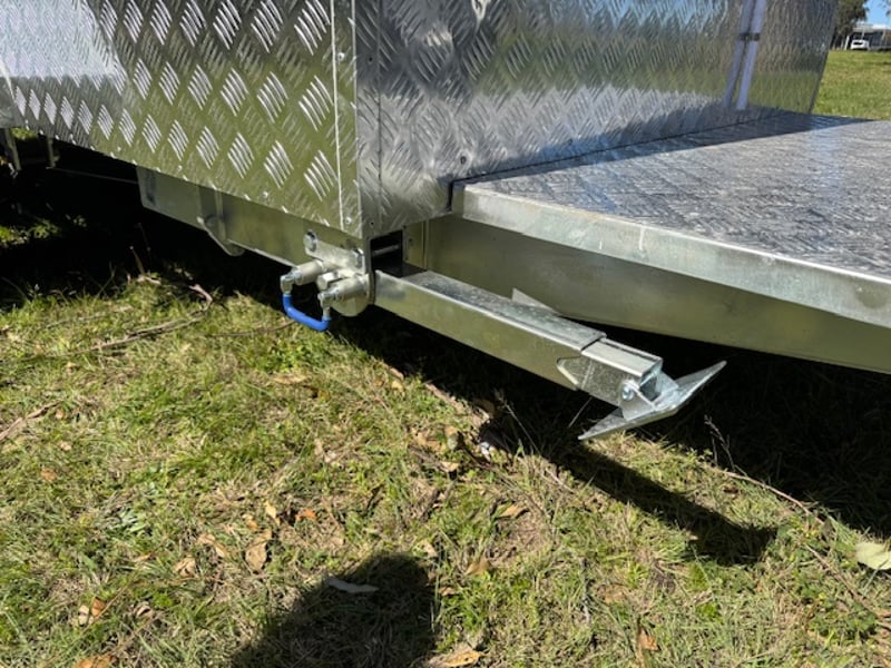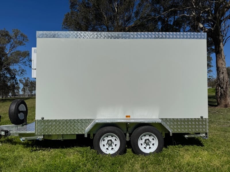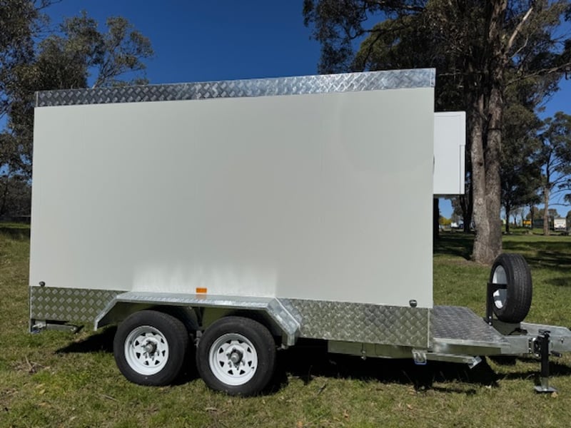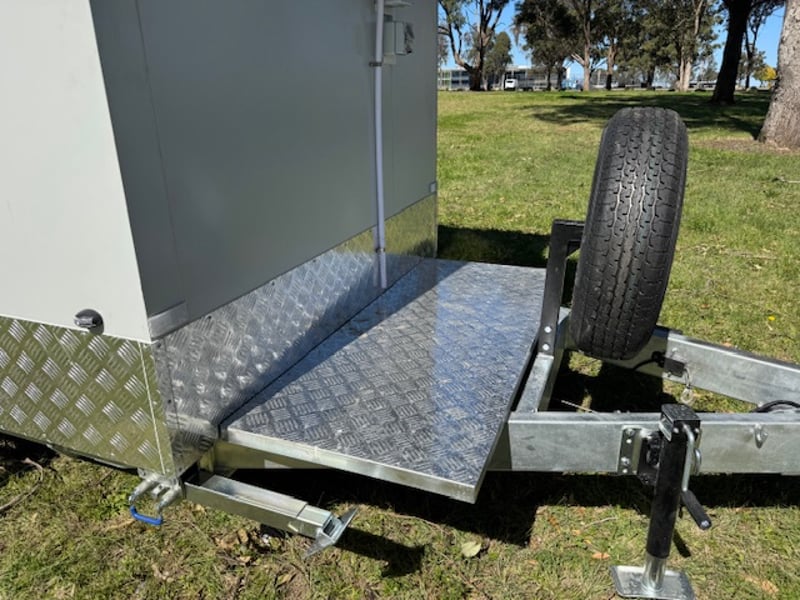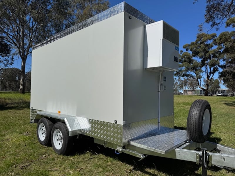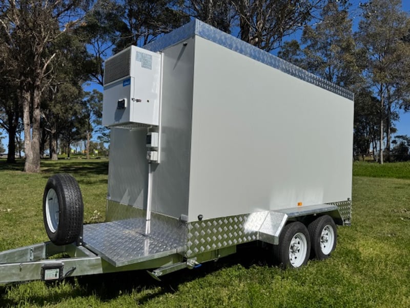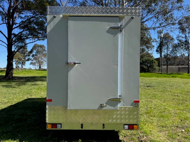 The 3800 Cool Room Trailer offers maximum storage capacity and reliable cooling performance for large-scale commercial and event needs. Its 3.8m insulated cool room body is built with 100mm thick premium panels for superior efficiency, powered by TECUMSEH 1.5P cooling system (–18°C to +10°C). Designed for durability, it features a hot-dipped galvanized chassis with aluminium checker plate finish, electric brakes, 15-inch tyres (plus spare), dropdown support legs, and a comprehensive lighting package. Safety is ensured with an emergency release exit, fitted bell, and waterproof 15-amp inlet. Practical inclusions such as a drain plug, internal door flaps, 1950mm internal height, and wide 900x1700mm door make it ideal for professional catering, events, and heavy-duty commercial use.