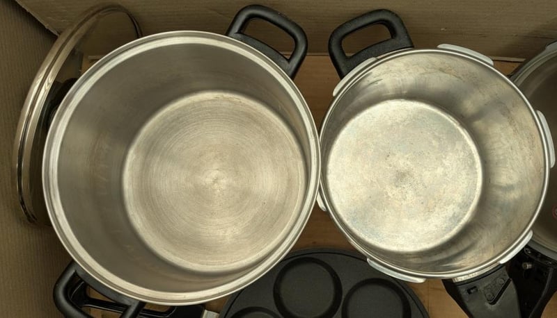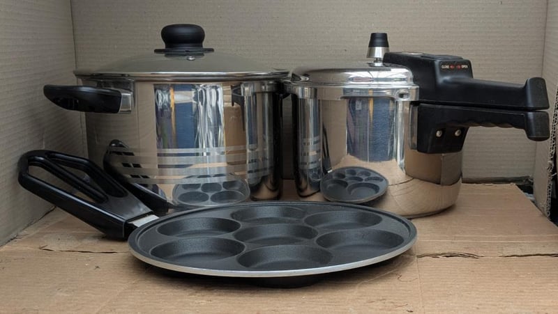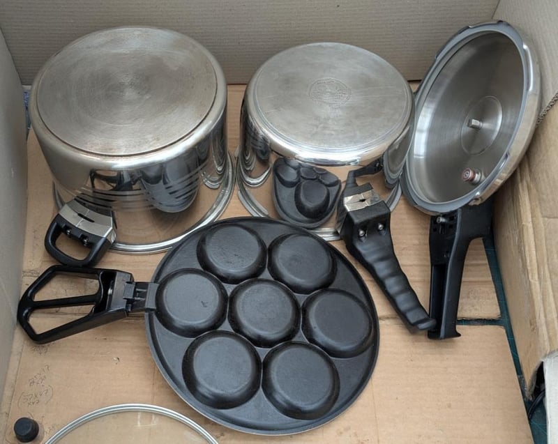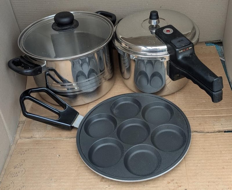 Baccarat 24cm stainless steel pot, Ronson 22cm pressure cooker & Bessemer Gourmet dutch pancake nonstick frypan