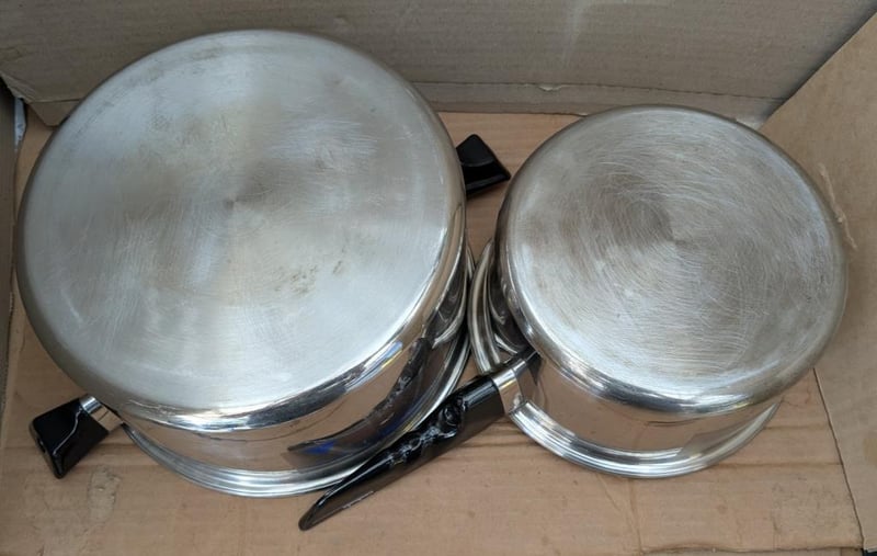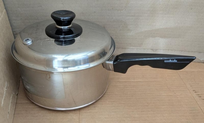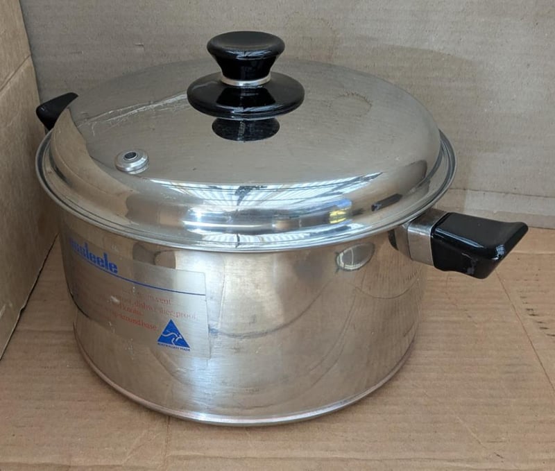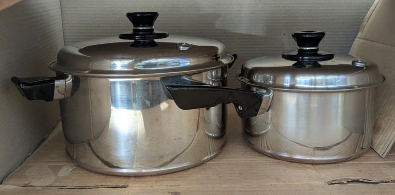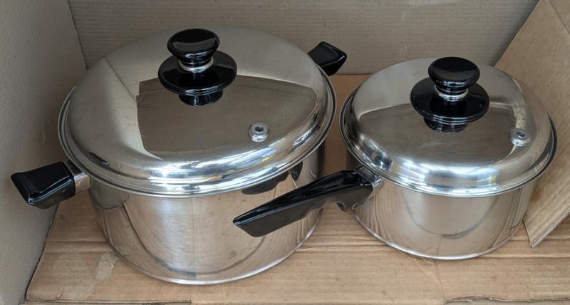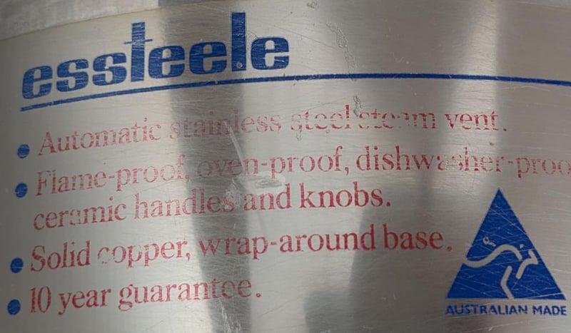 ESSTEELE 3 litres saucepan and 6 litres pot, stainless automatic steam vent, ceramic handle & knobs, copper base & oven proof 3