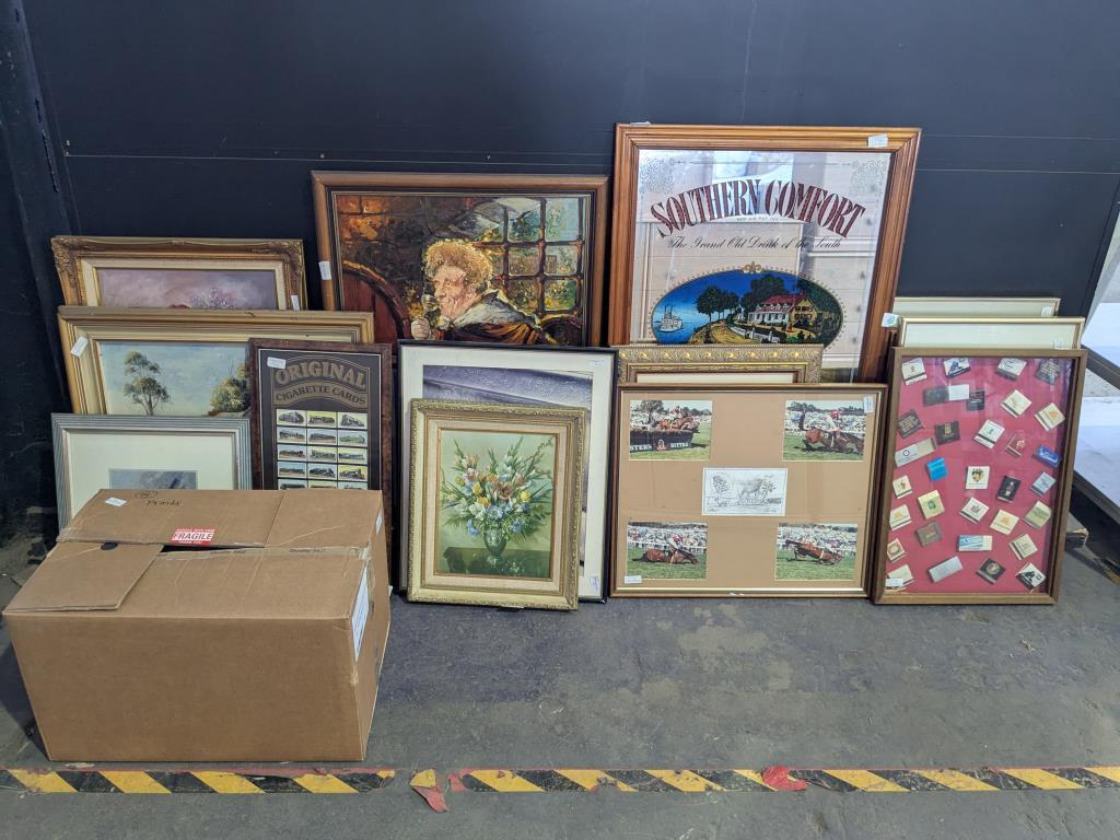 Artwork, over 20 pieces including framed paintings, prints, mirror artwork and more Sold as lot