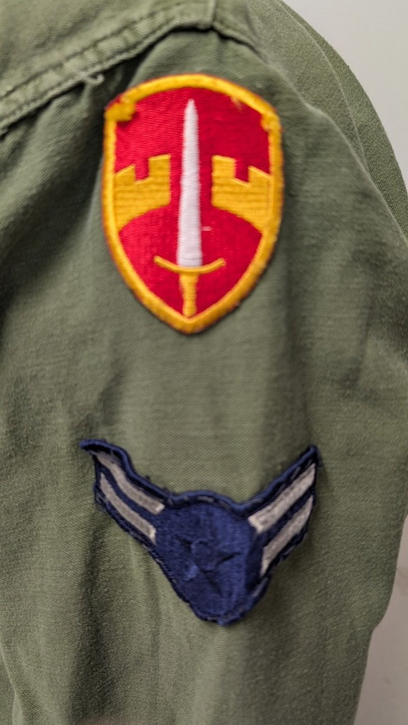 GREEN ARMY JACKET WITH PATCHESCondition: Fair - Refer To ImagesSR562185+3
