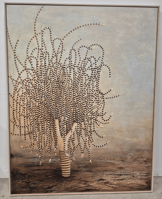 VERA MOLLER (1955 - ) Original Oil Painting On Linen Title: "Thesaura" Frame Size: 137cm x 107cm Item Size: Height: 137cm, Width: 107cm, Depth: 6cm, Weight: 12Kg Signature Details: Un Condition: Good - Refer To Images 586075+2