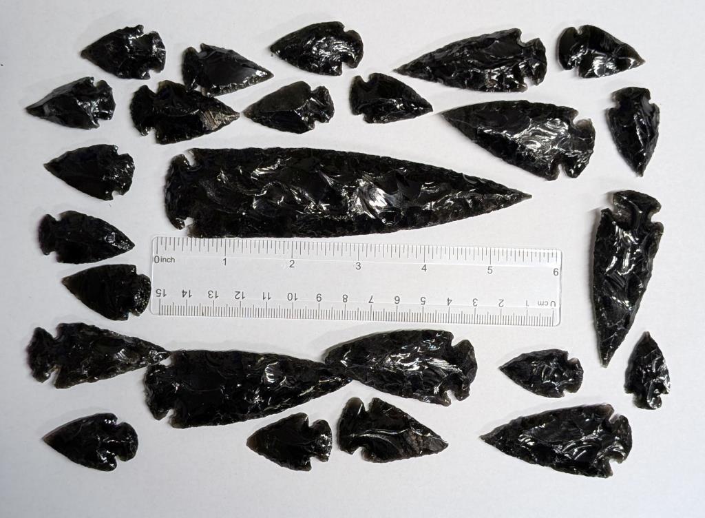 TWO DOZEN OBSIDIAN STONE ARROWHEADS